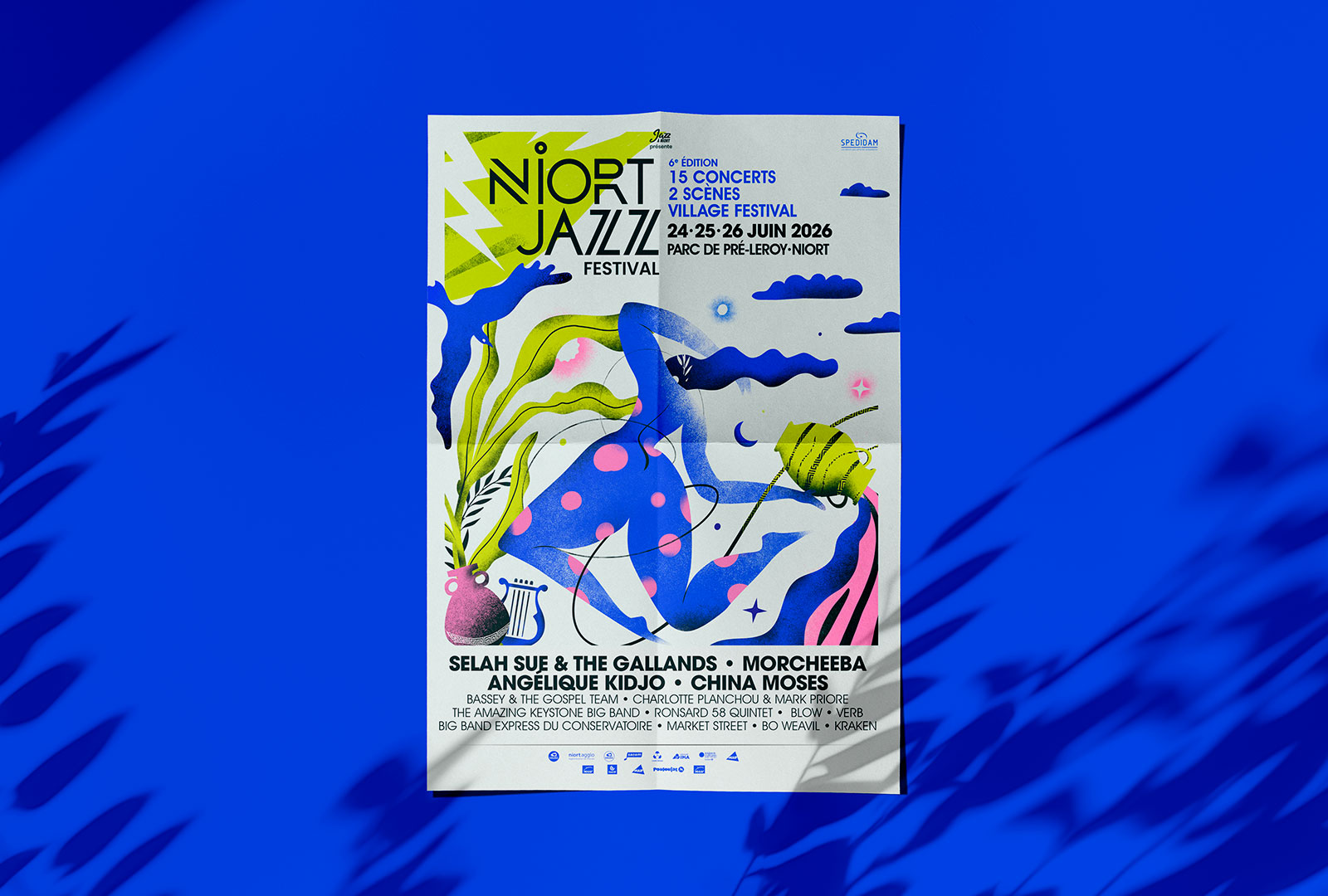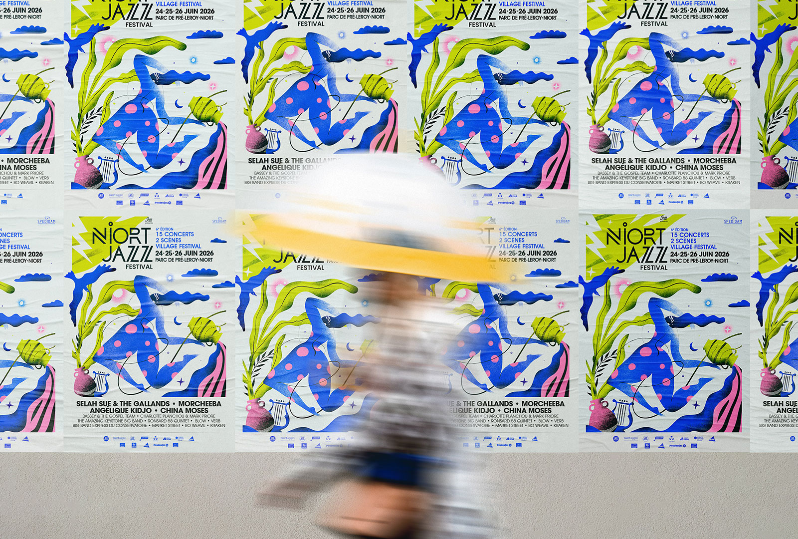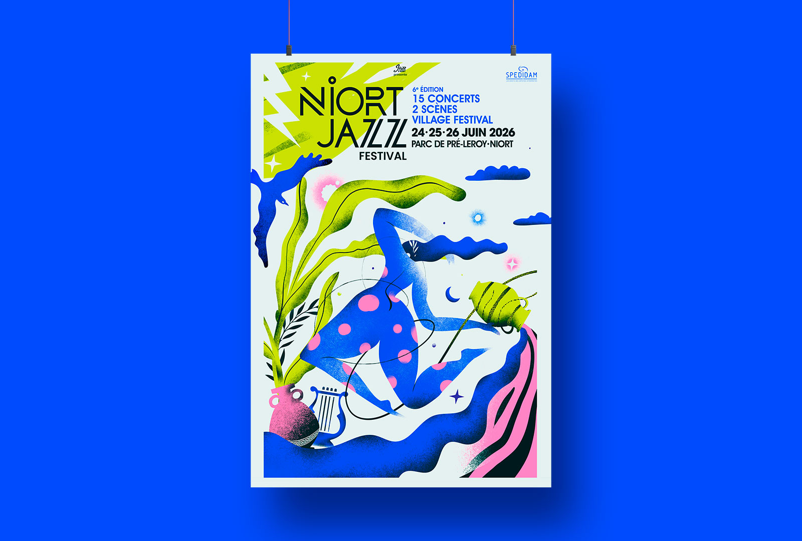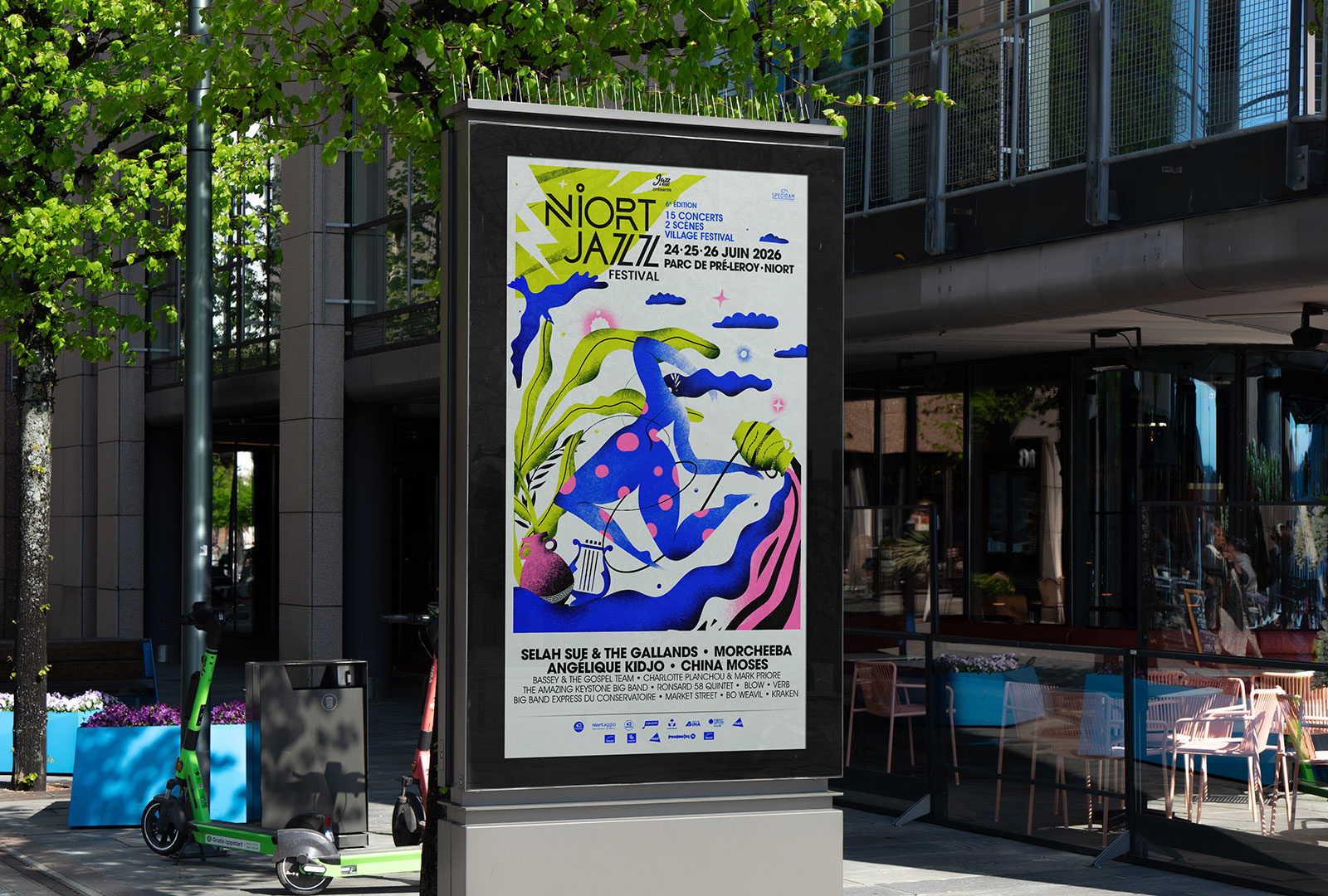 Direction artistique de l’édition 2026 : Le Jazz et la Mythologie grecque. Conception d’un récit visuel fort autour de symboles antiques et de silhouettes en mouvement pour traduire la liberté et l’énergie du festival. Cette affiche permet à l’événement de se renouveler avec un univers onirique et vibrant, tout en conservant une signature graphique cohérente. Un système visuel conçu pour vivre sur tous les supports, de l’affichage urbain au digital, au service d’une expérience musicale immersive.
